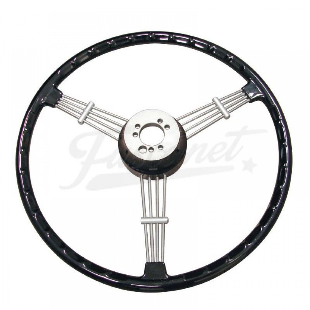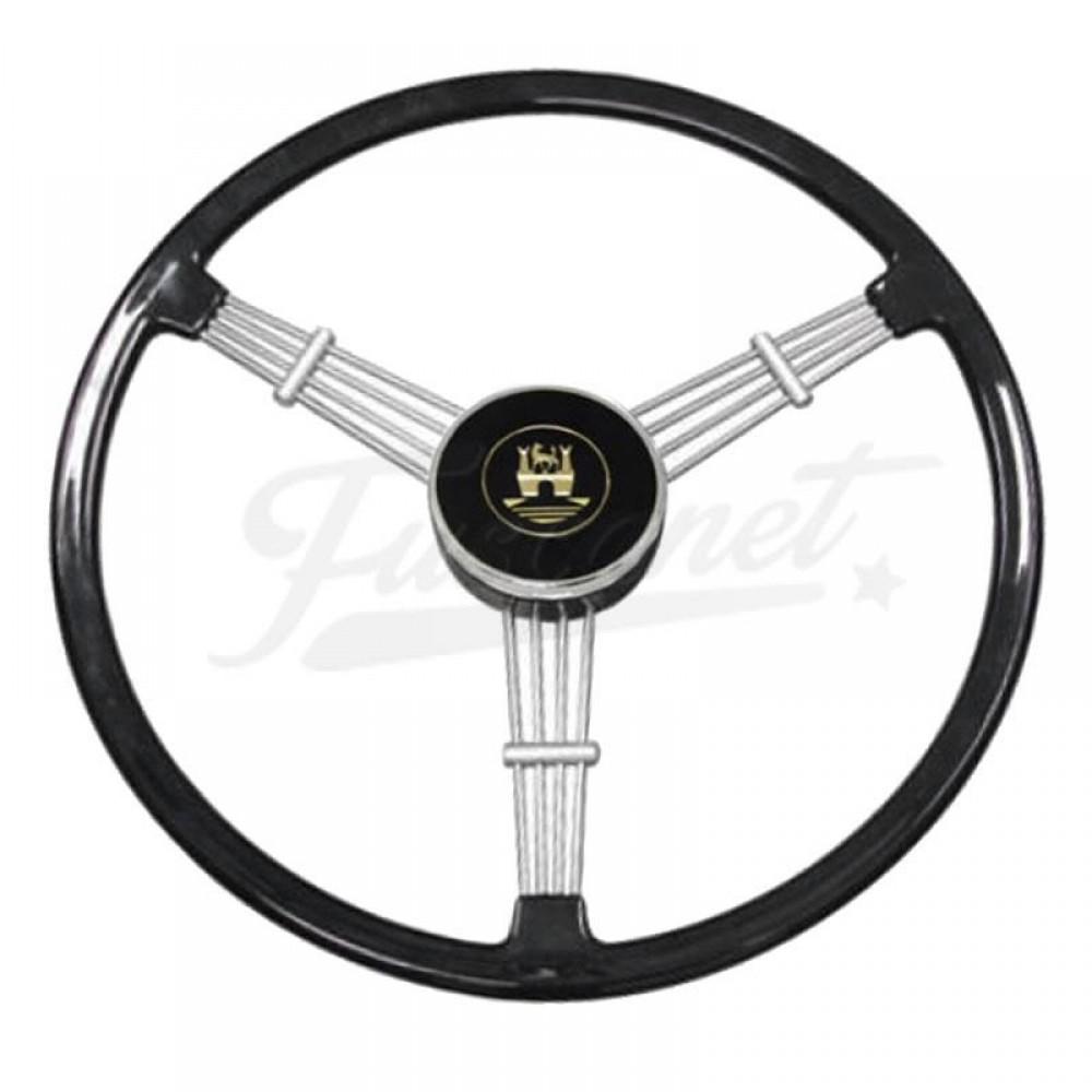 Volante vintage de 3 raios, estilo Banjo, de 390mm de diâmetro. Possui